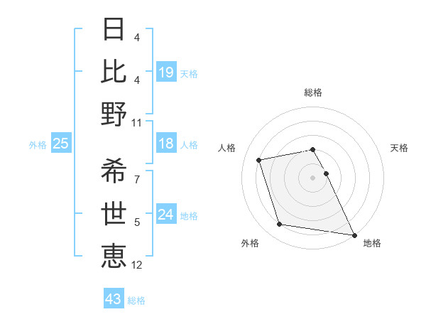 日比野 希世恵さんの外格は25画の4点!