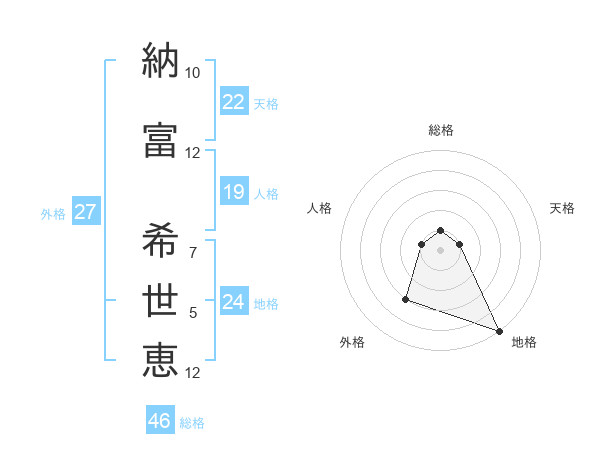 納富 希世恵さんの天格は22画の1点!