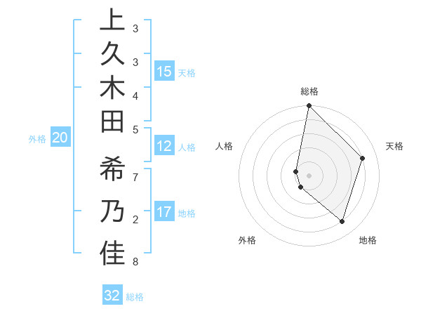 上久木田 希乃佳さんを姓名の画数から五運を鑑定