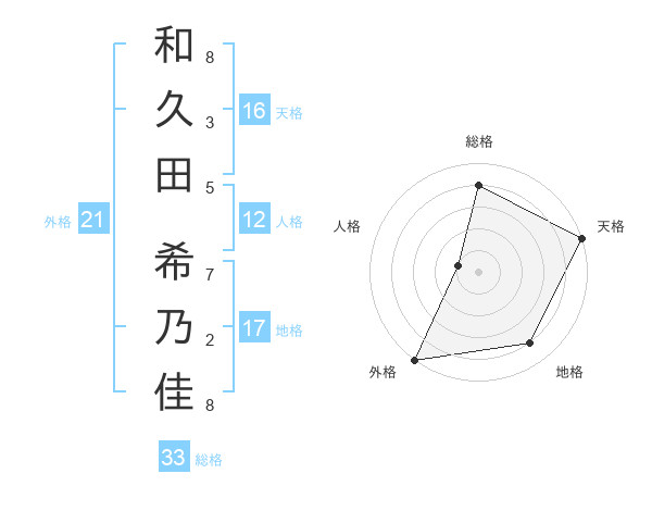 和久田 希乃佳さんを姓名の画数から五運を鑑定