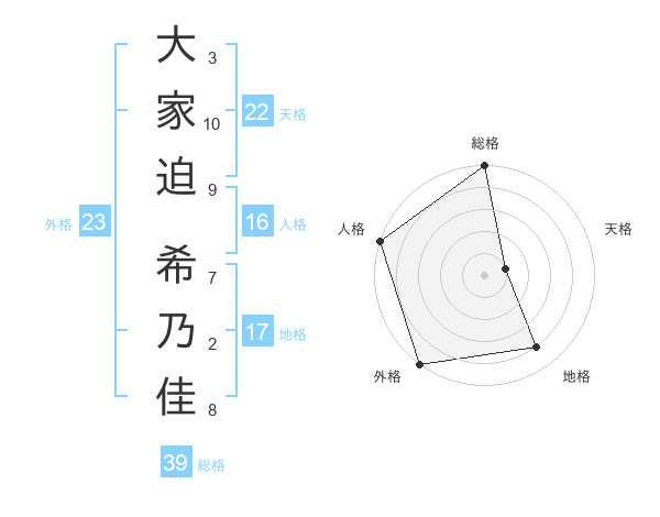 大家迫 希乃佳さんを姓名の画数から五運を鑑定