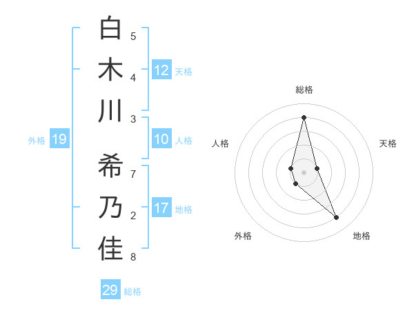 白木川 希乃佳さんの総格は29画の4点!
