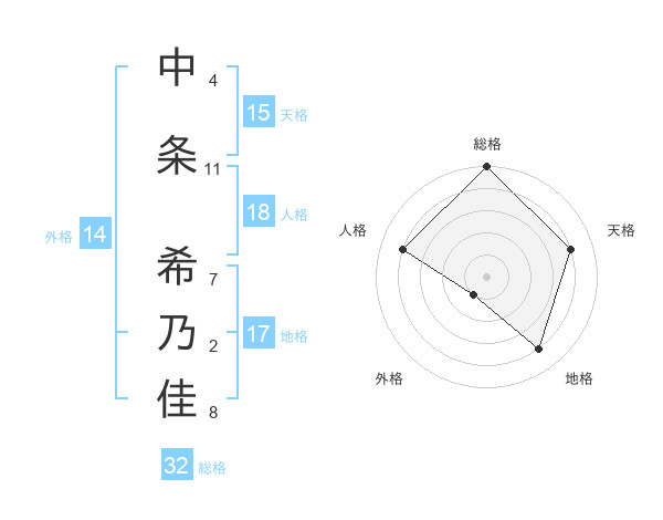 中条 希乃佳さんを姓名の画数から五運を鑑定