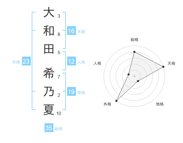 大和田 希乃夏さんを姓名の画数から五運を鑑定