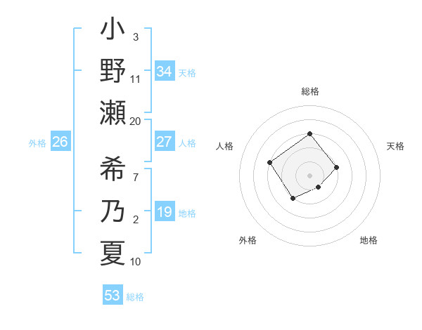 小野瀬 希乃夏さんを姓名の画数から五運を鑑定