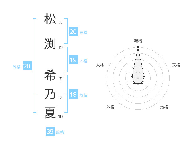 松渕 希乃夏さんの総格は39画の5点!