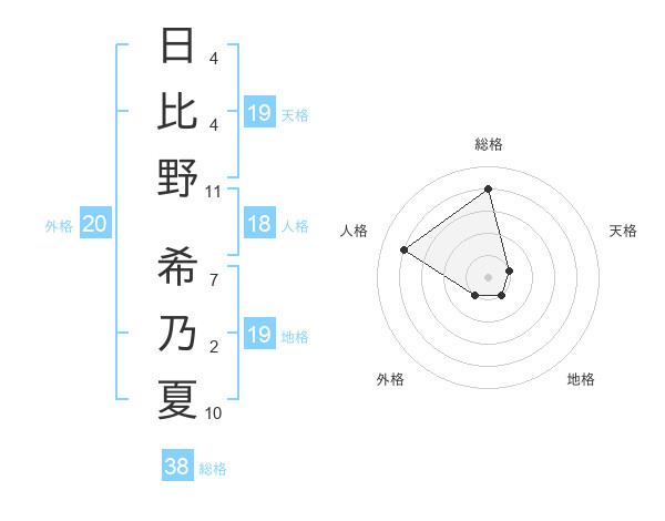 日比野 希乃夏さんを姓名の画数から五運を鑑定