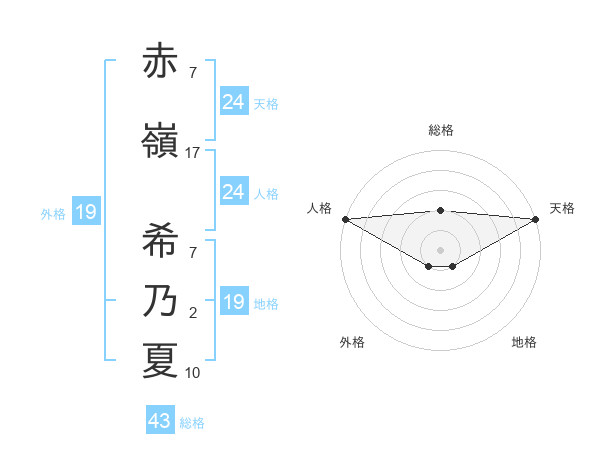 赤嶺 希乃夏さんを姓名の画数から五運を鑑定
