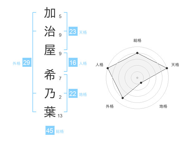 加治屋 希乃葉さんを姓名の画数から五運を鑑定