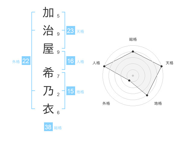 加治屋 希乃衣さんの天格は23画の5点