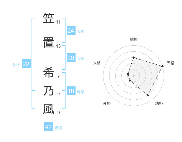 笠置 希乃風さんを姓名の画数から五運を鑑定