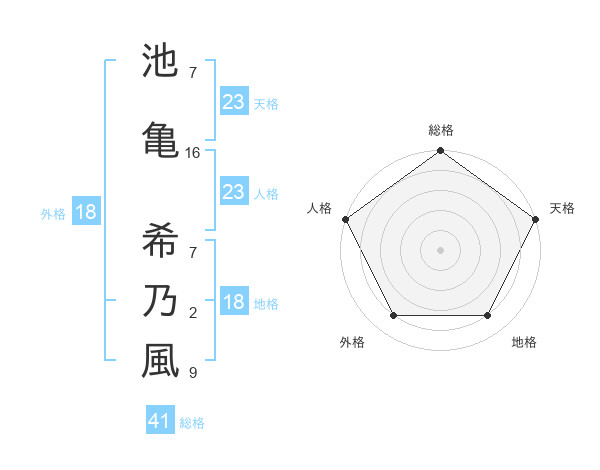 池亀 希乃風さんの総格は41画の5点!
