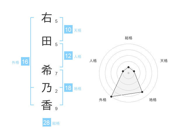 右田 希乃香さんの総格は28画の1点!