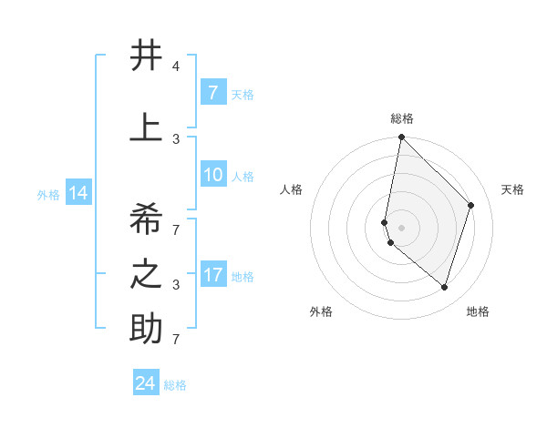 井上 希之助さんの総格は24画の5点!