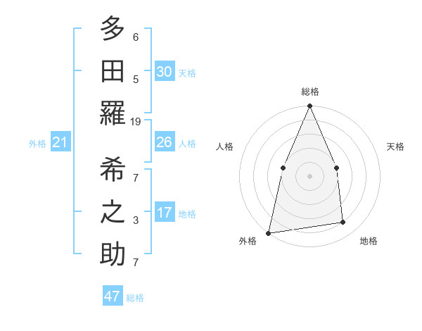 多田羅 希之助さんを姓名の画数から五運を鑑定