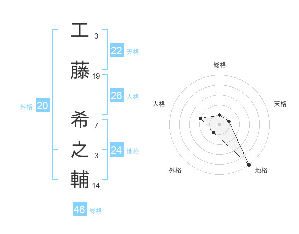工藤 希之輔さんの総格は46画の1点