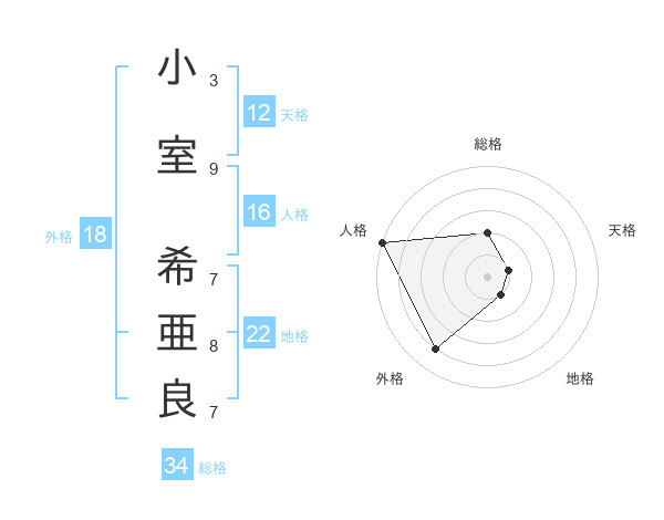 小室 希亜良さんを姓名の画数から五運を鑑定