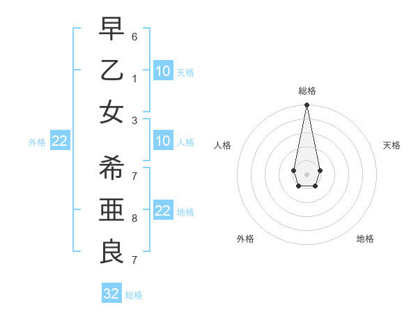 早乙女 希亜良さんを姓名の画数から五運を鑑定