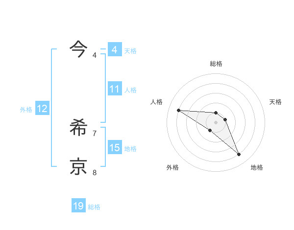今 希京さんの総格は19画の1点!
