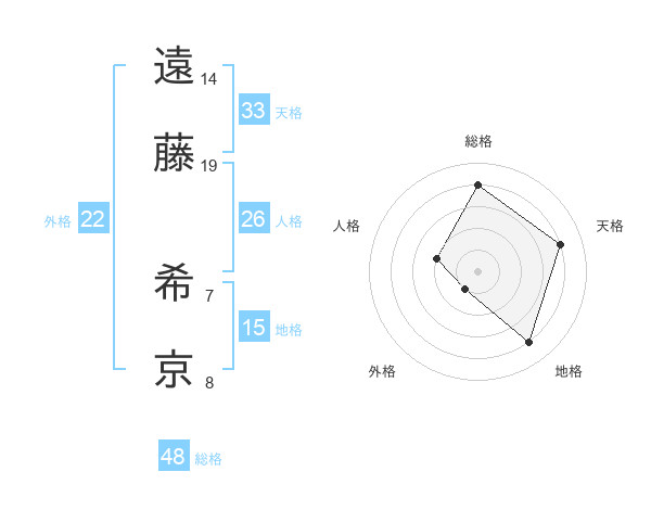 遠藤 希京さんを姓名の画数から五運を鑑定