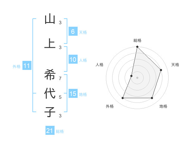 山上 希代子さんの総格は21画の5点!