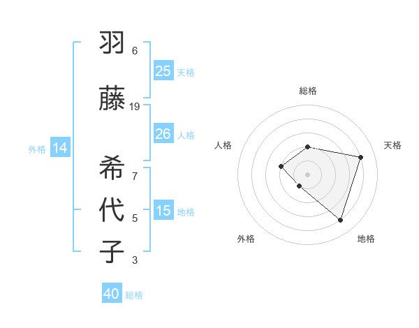 羽藤 希代子さんを姓名の画数から五運を鑑定