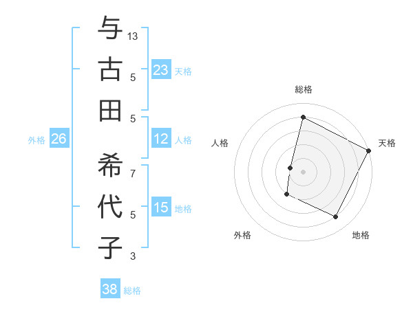与古田 希代子さんを姓名の画数から五運を鑑定