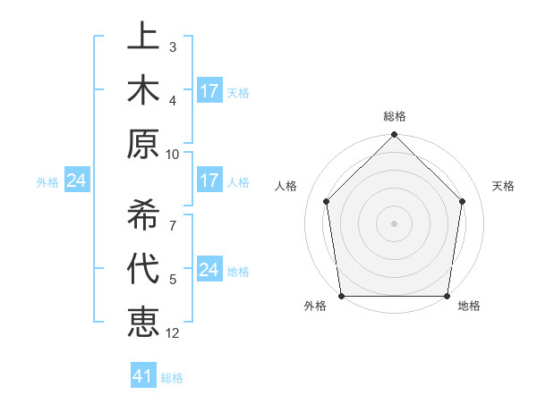 上木原 希代恵さんを姓名の画数から五運を鑑定