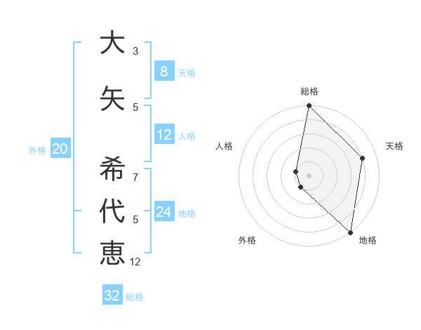 大矢 希代恵さんを姓名の画数から五運を鑑定