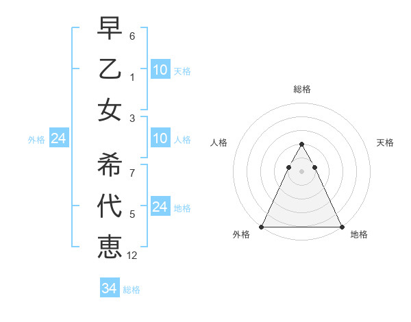 早乙女 希代恵さんを姓名の画数から五運を鑑定