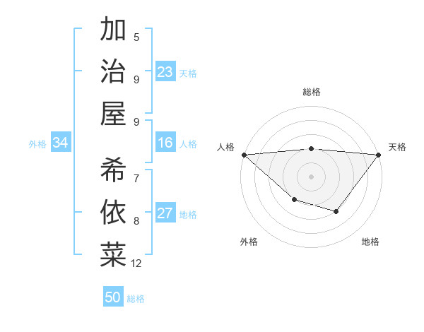 加治屋 希依菜さんの天格は23画の5点