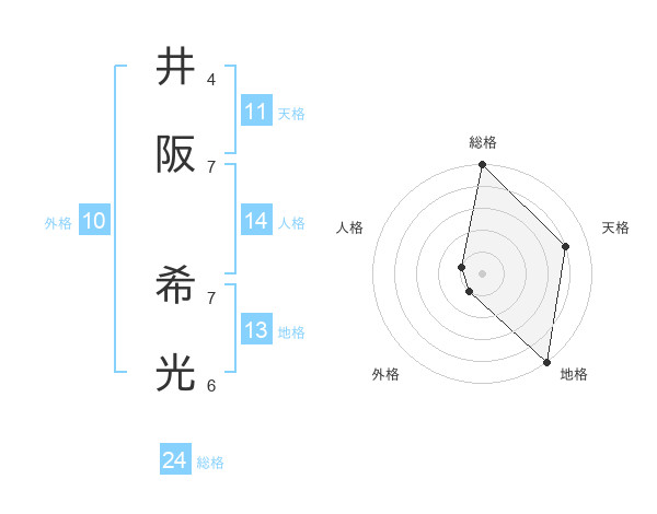 井阪 希光さんの総格は24画の5点!