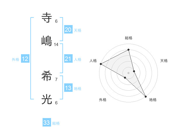 寺嶋 希光さんを姓名の画数から五運を鑑定