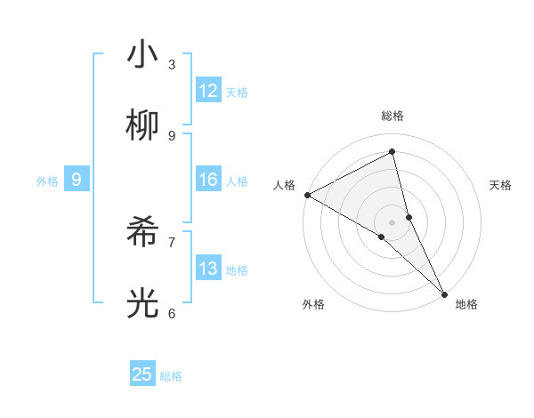 小柳 希光さんの総格は25画の4点!