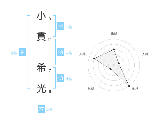 小貫 希光さんの総格は27画の3点!