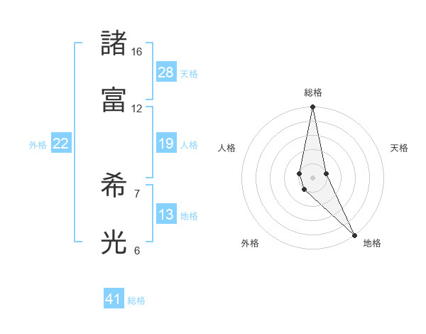 諸富 希光さんの外格は22画の1点!