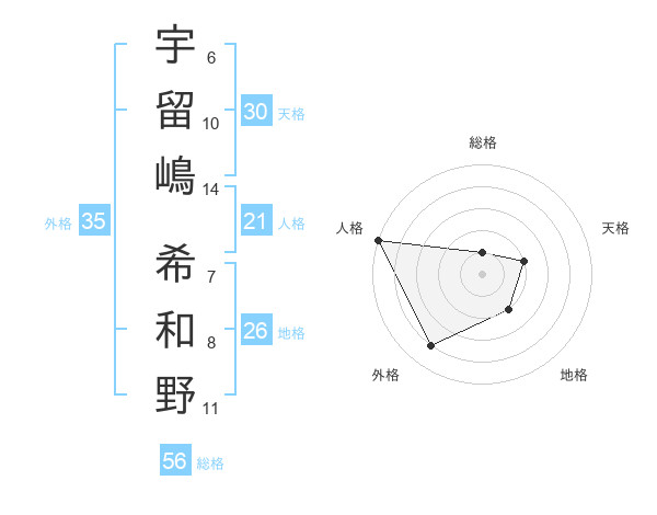 宇留嶋 希和野さんの総格は56画の1点
