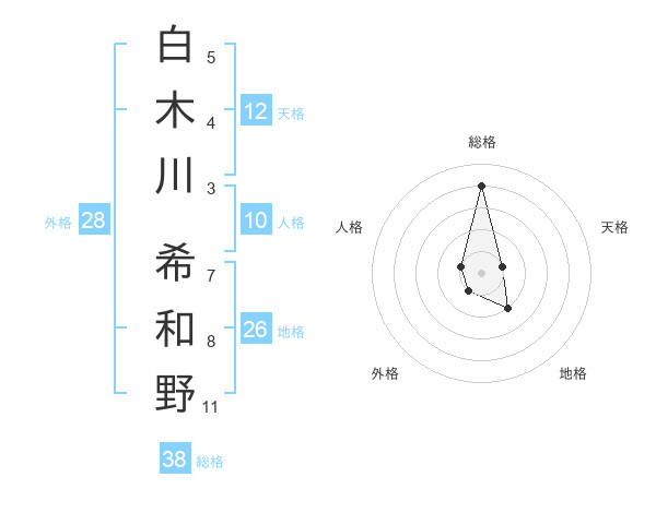 白木川 希和野さんを姓名の画数から五運を鑑定