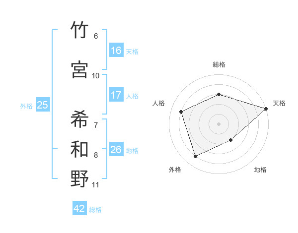 竹宮 希和野さんの総格は42画の3点