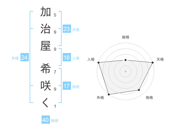 加治屋 希咲くさんの天格は23画の5点!