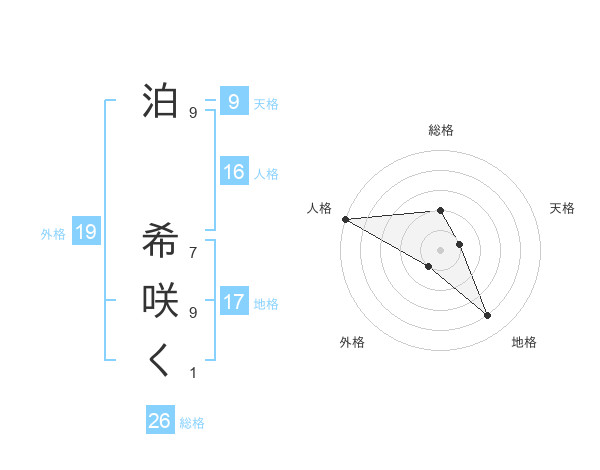 泊 希咲くさんを姓名の画数から五運を鑑定