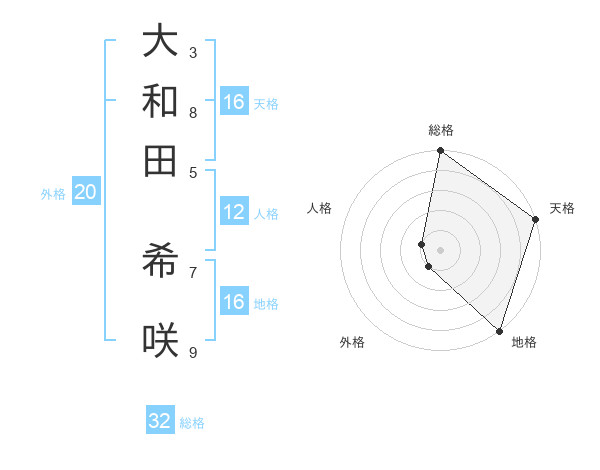 大和田 希咲さんを姓名の画数から五運を鑑定