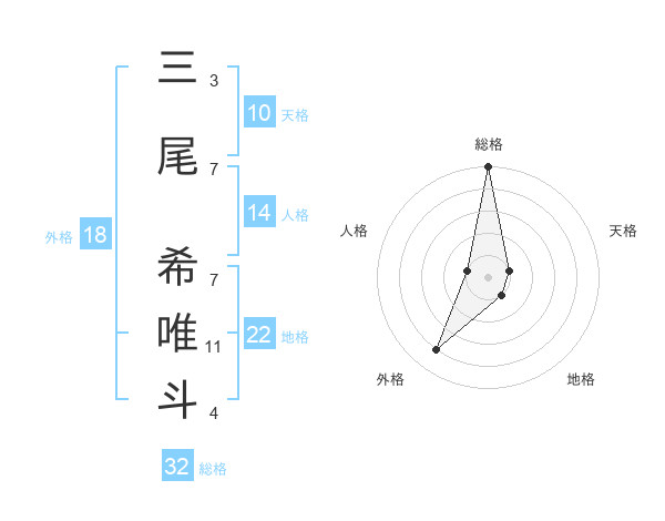 三尾 希唯斗さんの総格は32画の5点!