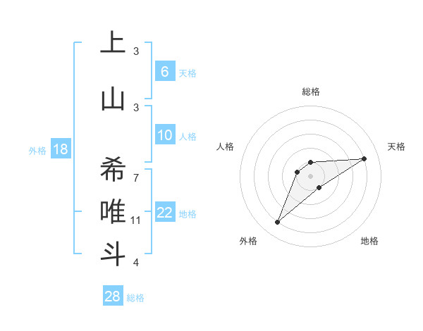 上山 希唯斗さんを姓名の画数から五運を鑑定