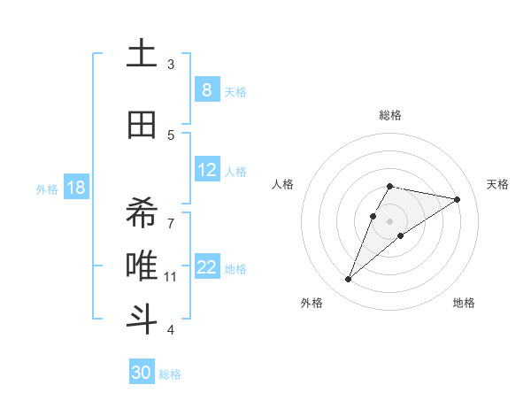 土田 希唯斗さんを姓名の画数から五運を鑑定