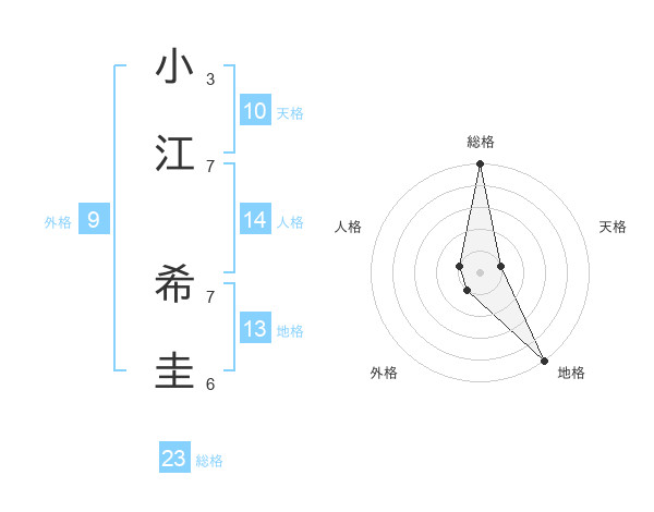 小江 希圭さんの総格は23画の5点!