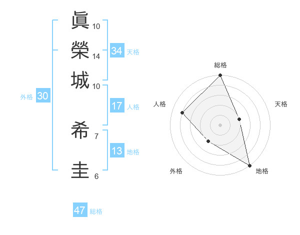 眞榮城 希圭さんの総格は47画の5点