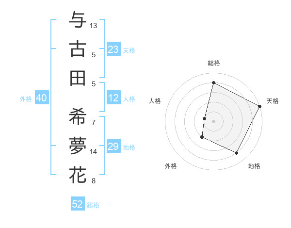 与古田 希夢花さんを姓名の画数から五運を鑑定