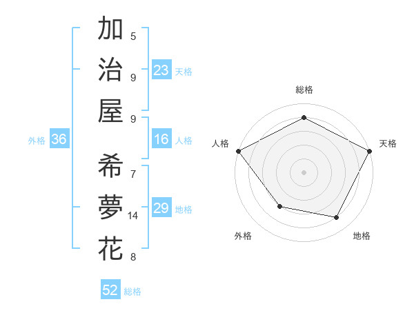 加治屋 希夢花さんの天格は23画の5点!