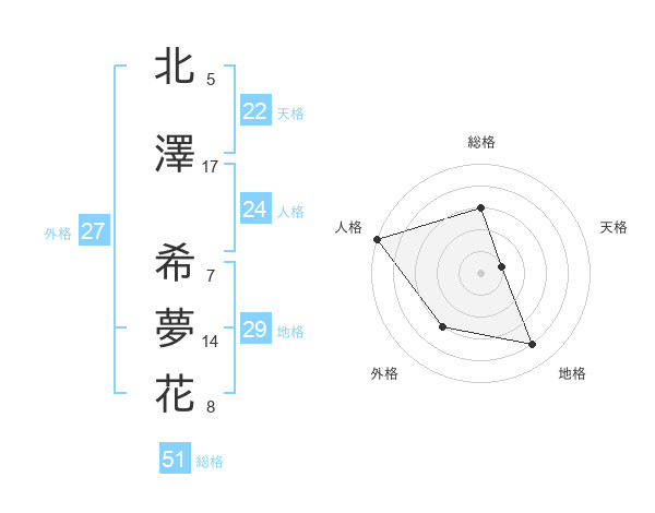 北澤 希夢花さんを姓名の画数から五運を鑑定